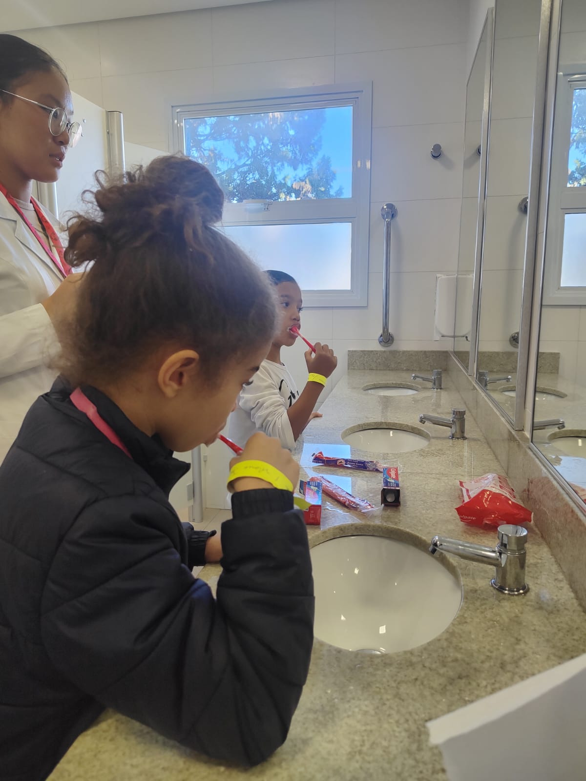 A aluna Daniela Chiang, 18 anos, está cursando o primeiro semestre e atuou na orientação e atividades com as crianças, além de ter auxiliado estudantes das outras séries na triagem de pacientes adultos. “Foi minha primeira ação voluntária, algo muito especial e transformador, que me fez perceber a potência do papel de um Dentista. A vivência vai contribuir para meu futuro”, afirma.